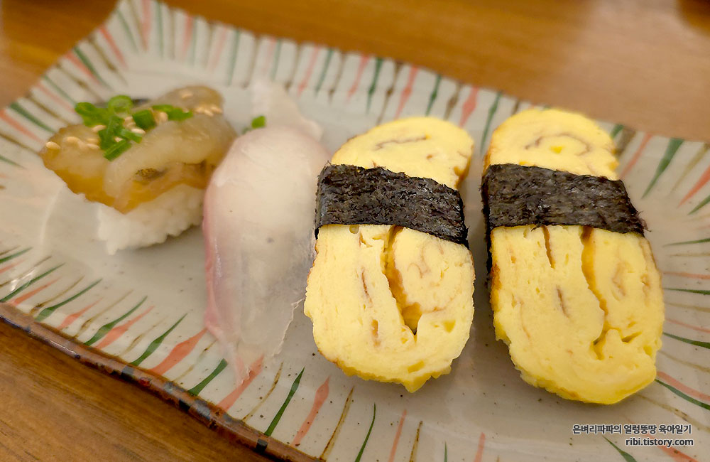 초밥은 계란말이 초밥이 나오면 그것만 먹을 것이라는 말과 함께 말이지요.ㅋ