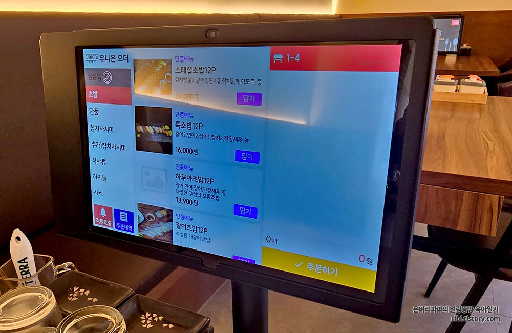 주문은 테이블마다 설치된 태블릿을 이용해 주문가능합니다.