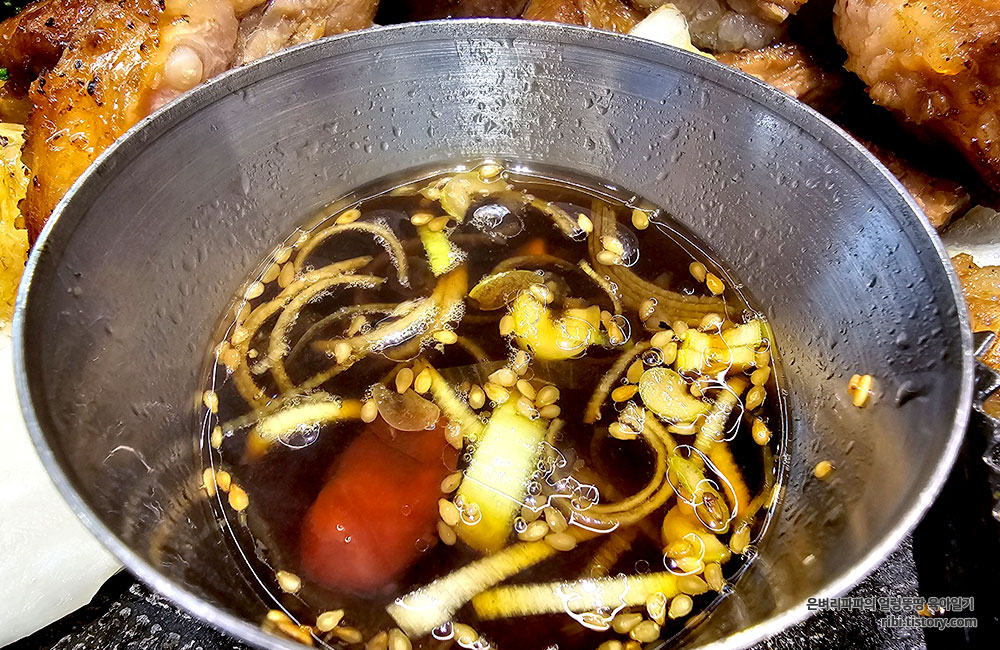 쌈에 싸먹고, 파채를 올려 쌈장과 함께 즐겨도 되고, 그냥 고기만 특제 소스에 콕 찍어 먹어도 아주 꿀맛입니다.