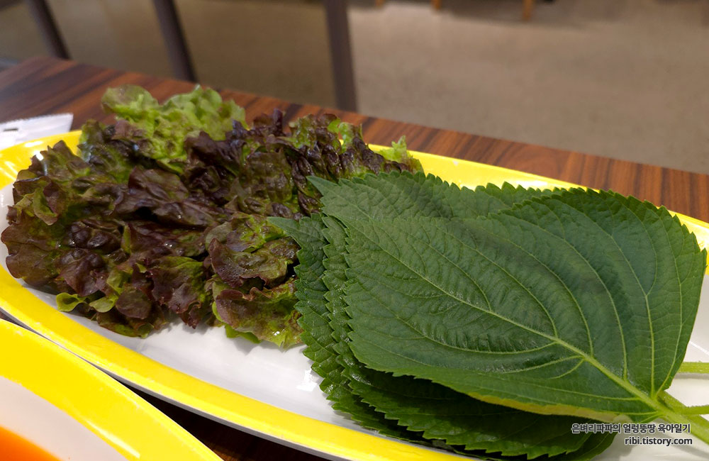 돼지갈비와 함께 곁들여진 갖가지 채소도