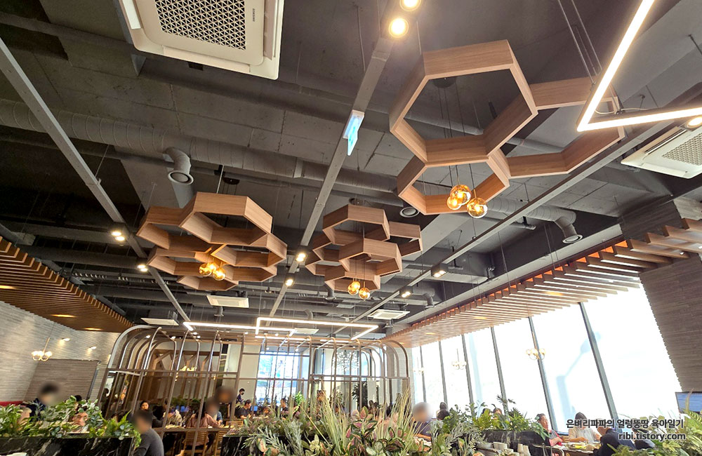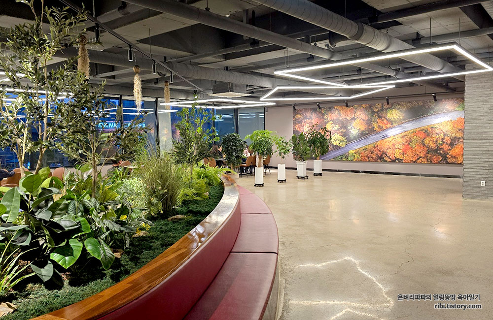큰 사진들과 중앙에 조성한 초록초록한 식물들로 시원함과 싱그러움을 느낄 수 있었어요.