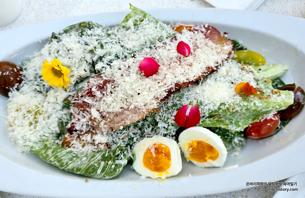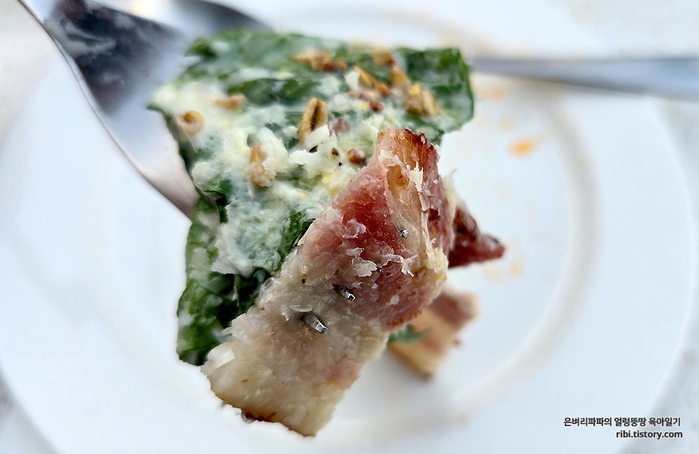 연이어 통삼겹 시저 샐러드가 나왔습니다.