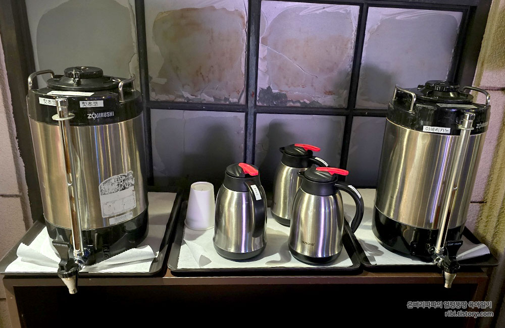 아메리카노, 핫초코, 케모마일차가 무제한 제공되니 식사 후 붐빌 수밖에 없습니다.
