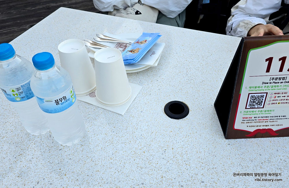 실내 이용 시에는 로봇이 서빙을 해주지만, 야외테이블은 계단 때문인지
