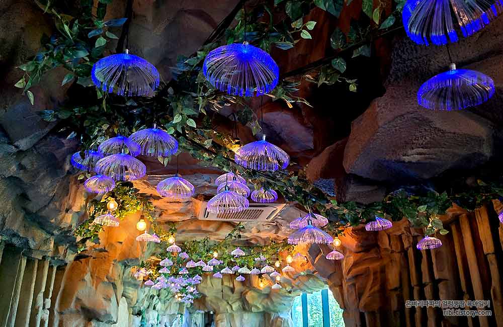들어올 때는 느끼지 못했던, 인공암반동굴 천장의 조명이 마치 영화 아바타를 연상시킵니다.