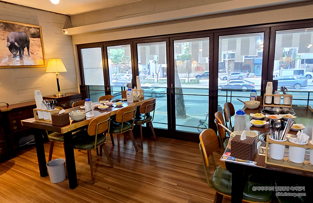 창가 쪽은 6인 테이블이고, 내부홀은 4인 테이블입니다.