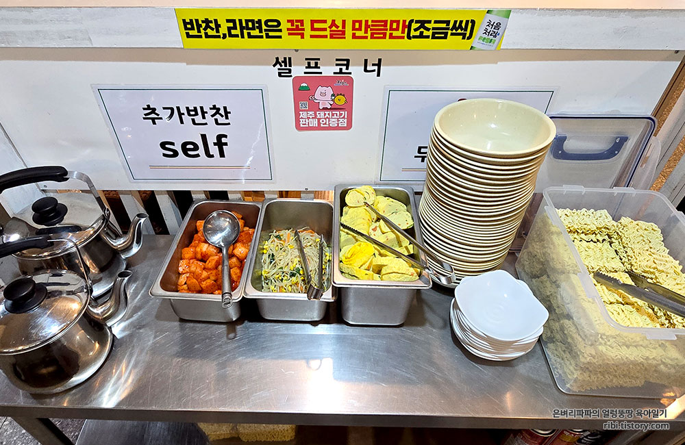 반찬은 셀프바에서 무한리필로 추가해 드실 수 있어요.