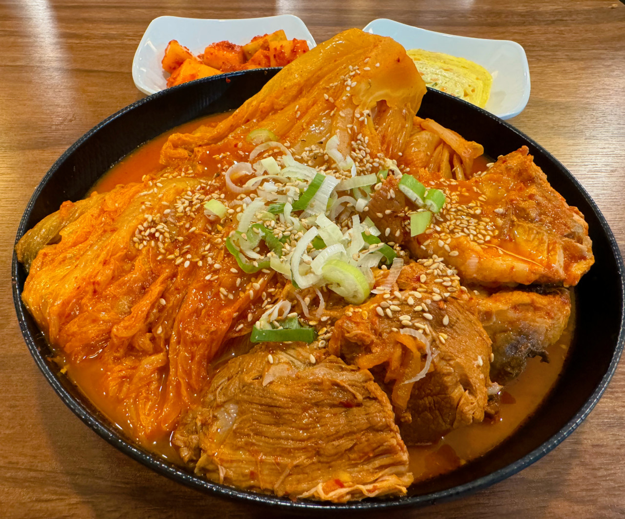 제주 흑돼지가 듬뿍 들어간 흑돼지 김치찜, 김치찌개와 무한리필 계란말이와 라면의 환상 조합~ 제주마을~!