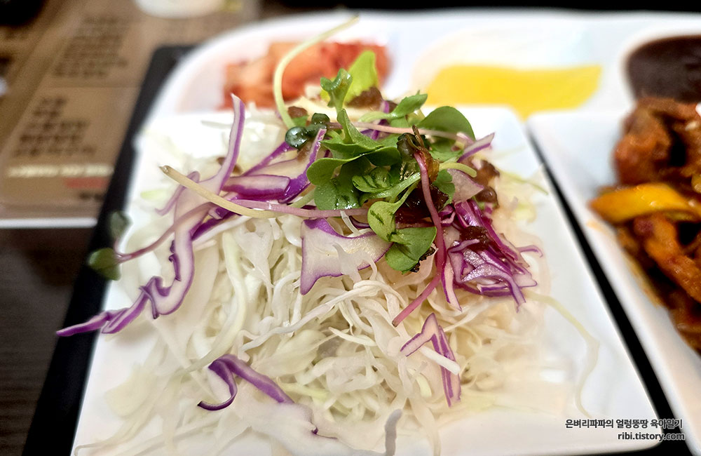 양배추 샐러드는 간장 베이스의 소스입니다.