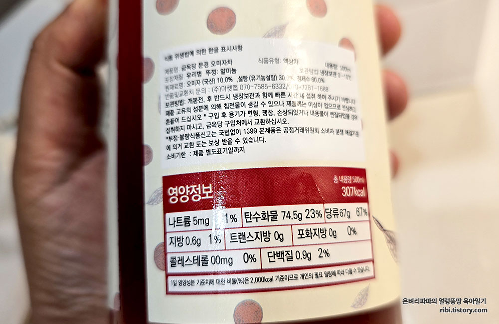 금옥당에서 판매중인 오미자차 액상 원액을 이번 여름에 요긴하게 먹고 있어요.