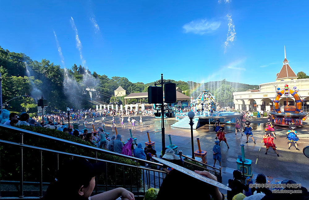 시원한 물줄기를 맞으며, 아들 녀석과 음악소리와 구호에 맞춰 방방 뛰었습니다.