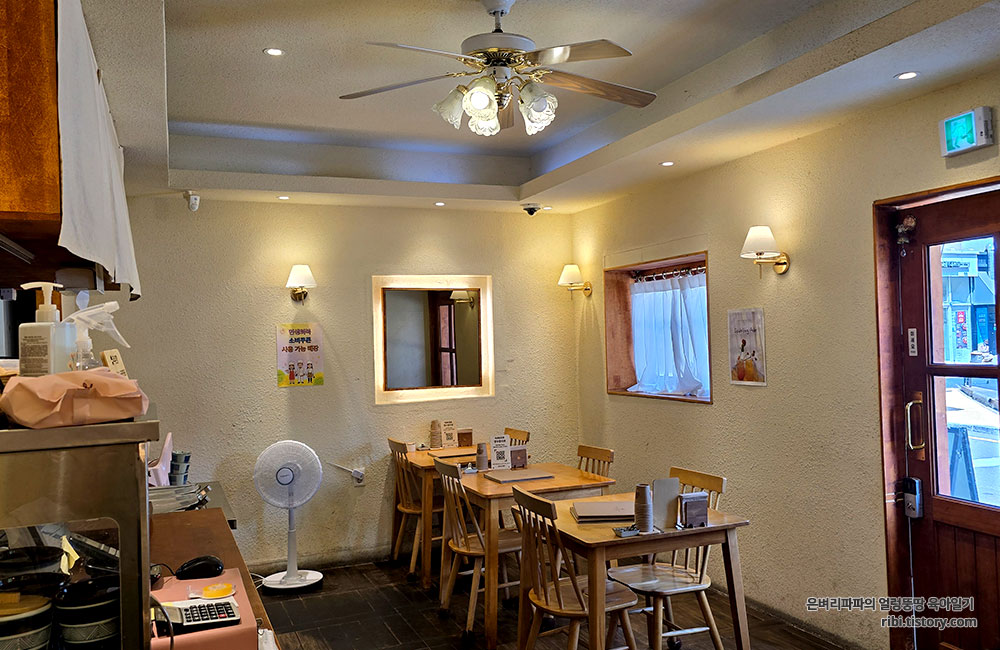 혼밥을 할 수 있는 창가석이 있고, 대부분 2인 테이블로 되어 있습니다.
