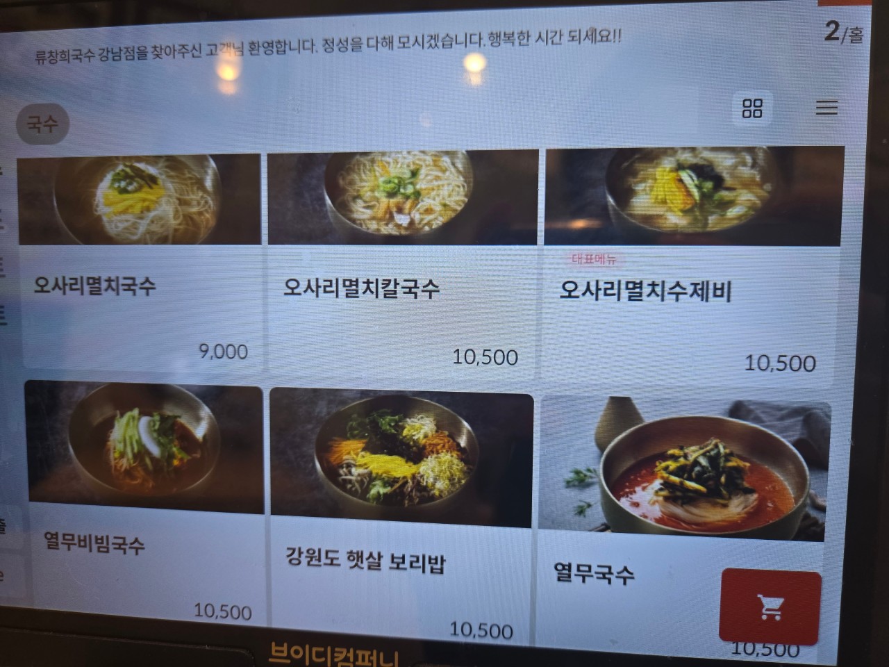메뉴판은 따로 없고, 테이블의 태블릿에 메뉴가 안내되어 있습니다.