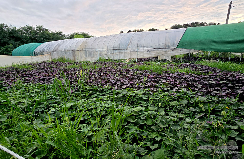 카페에서 나와 야외정원을 한 바퀴 더 둘러보고,카페 주차장 바로 뒤에 있던 고구마밭에 시선이 멈췄습니다.