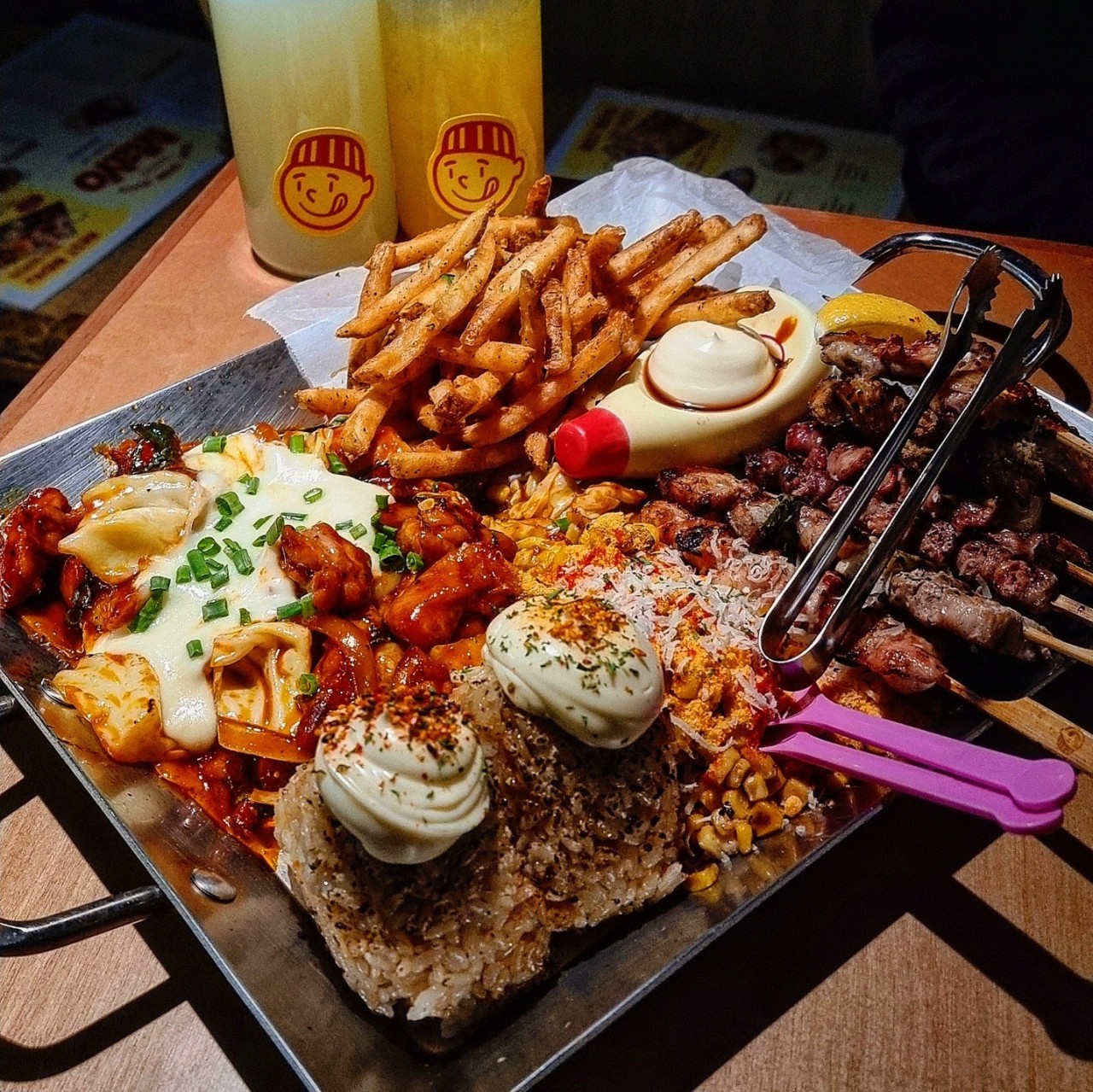 마약옥수수, 감자튀김, 주먹밥구이, 랜덤꼬치 8종, 안주 택 1의 구성으로