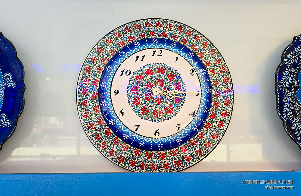 벽시계도 화려한 터키전통문양의 접시를 활용했네요.