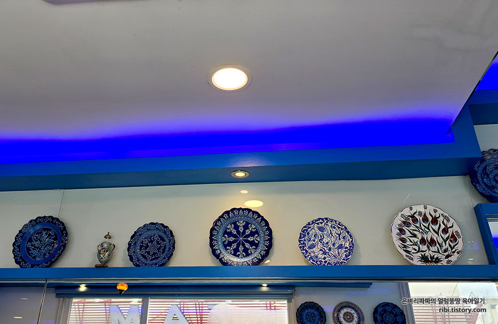그리고 터키 음식점답게, 터키블루 색상이 많이 사용된 것 같아요.