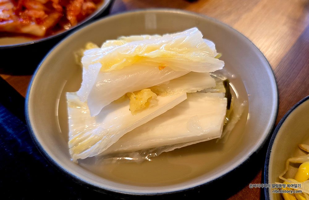 아삭한 백김치는 매운맛에 잘 어울립니다.