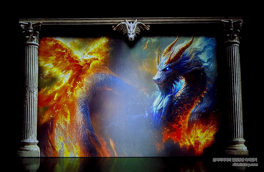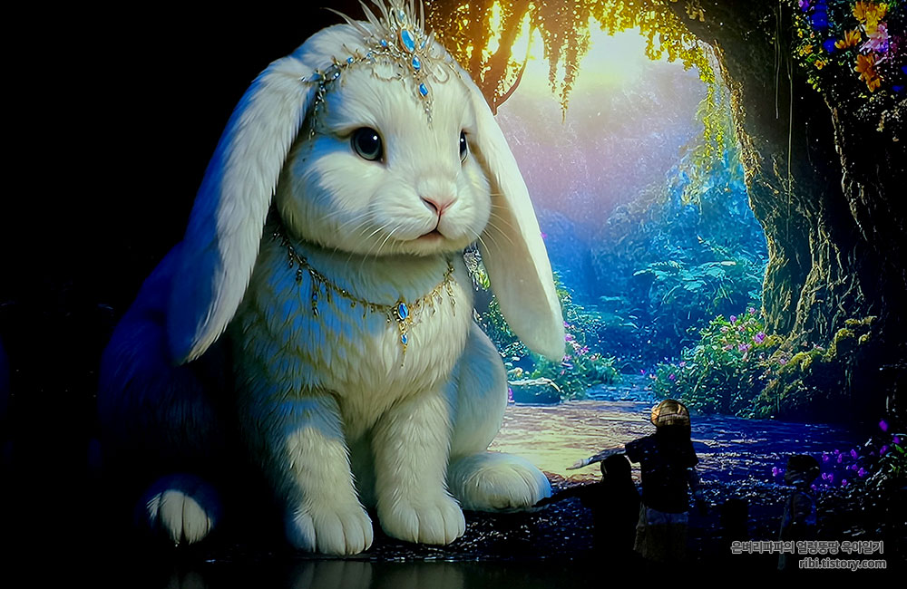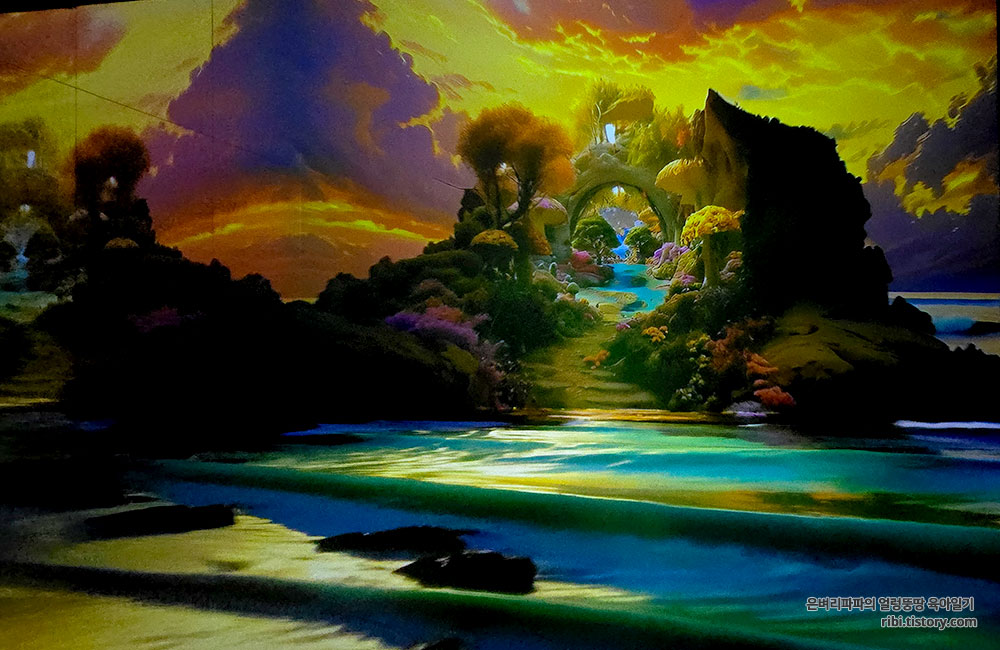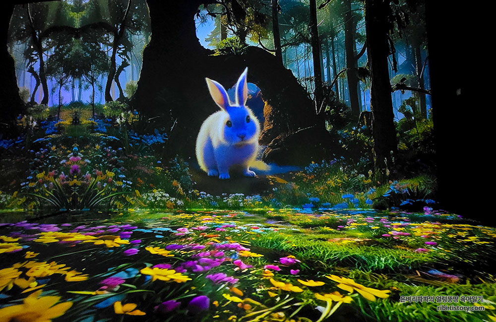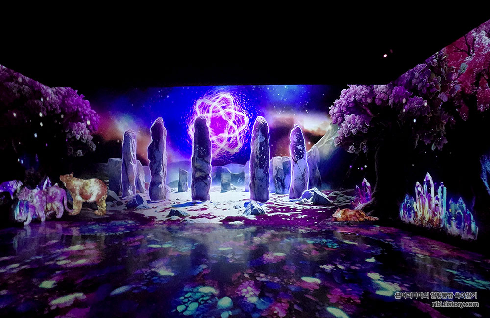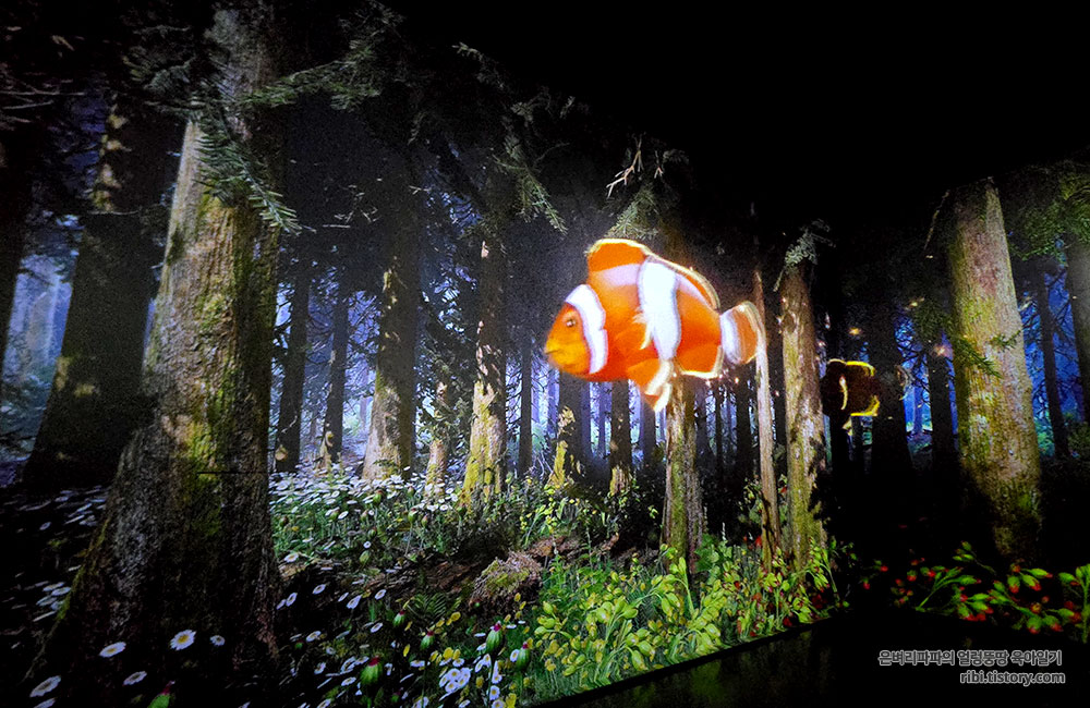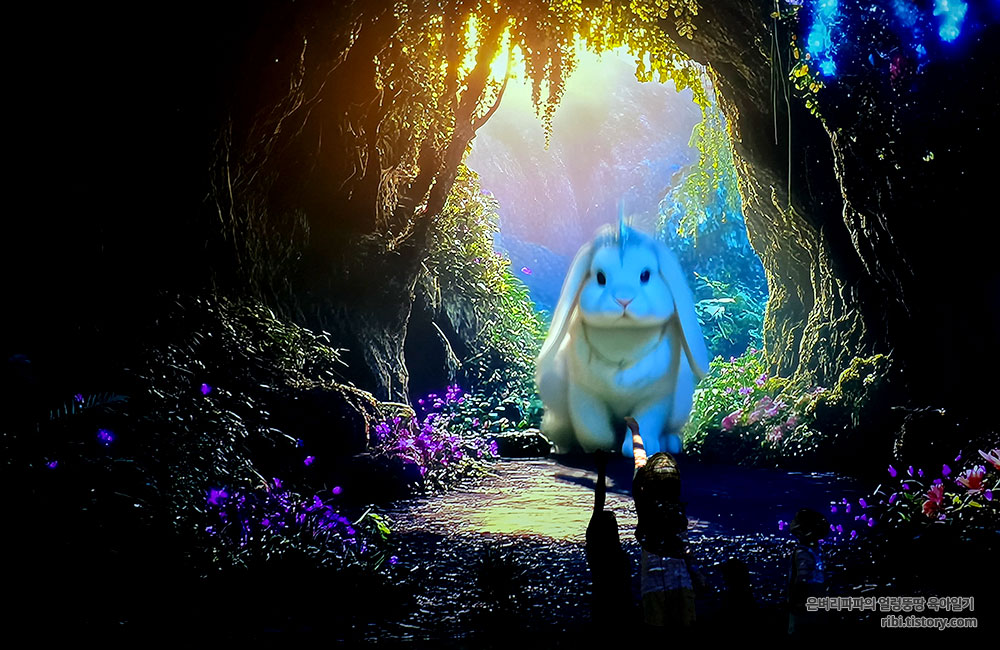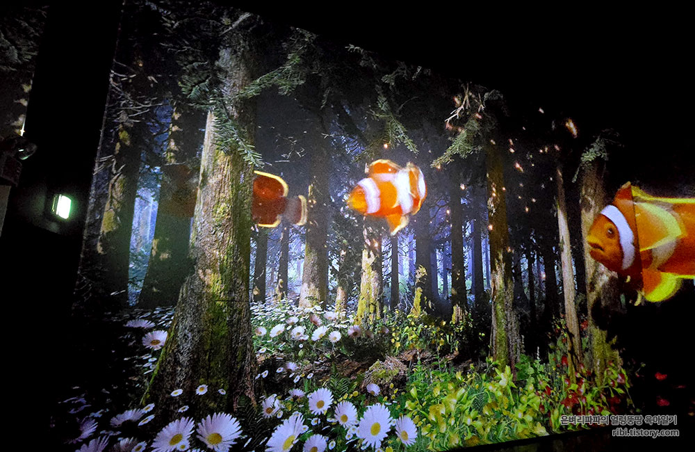 환상속의 동물들이 저 멀리서 나와 마치 관람객과 소통하는 듯한 영상이에요.