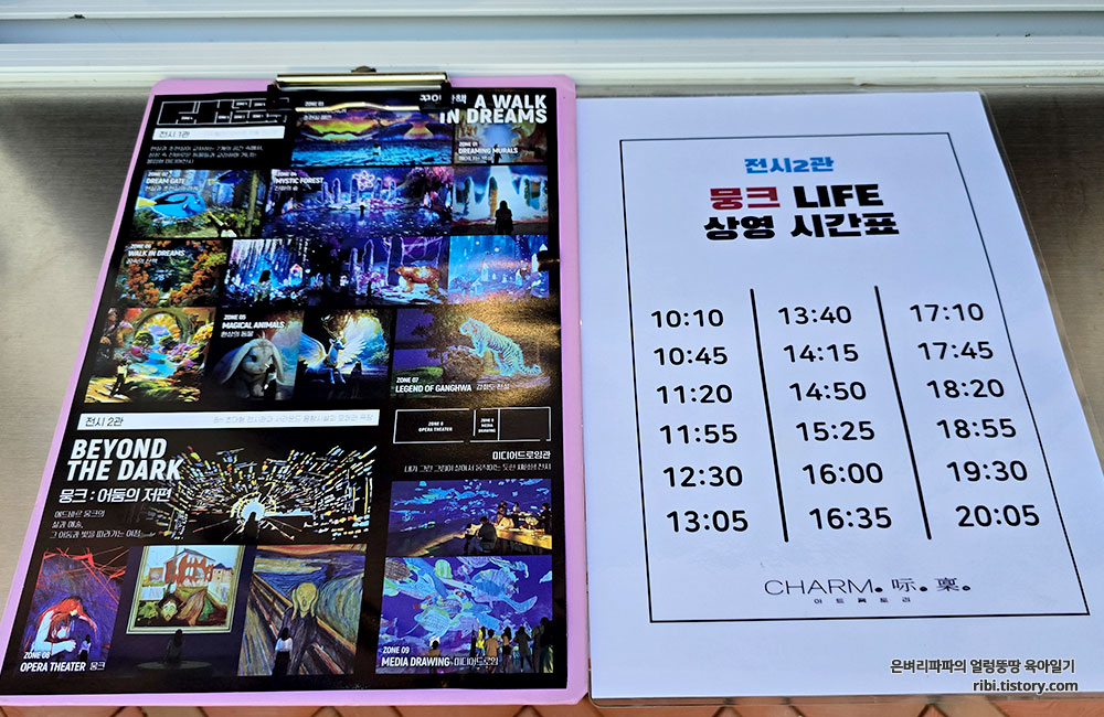 팔찌 발급과 함께 2전시관의 미디어아트 상영시간을 참고하라며 안내해 주십니다.