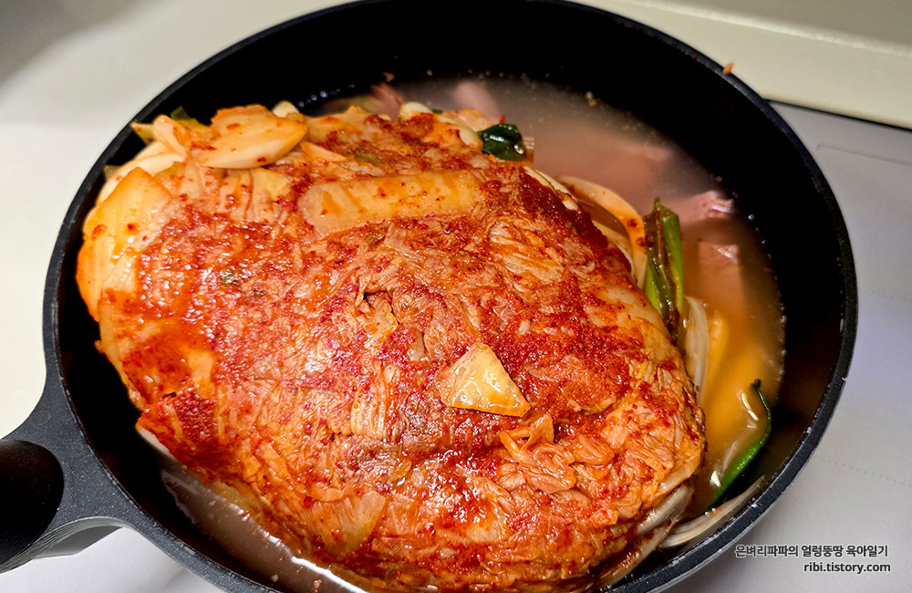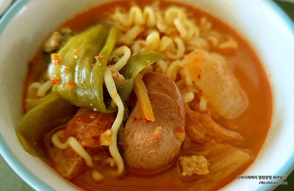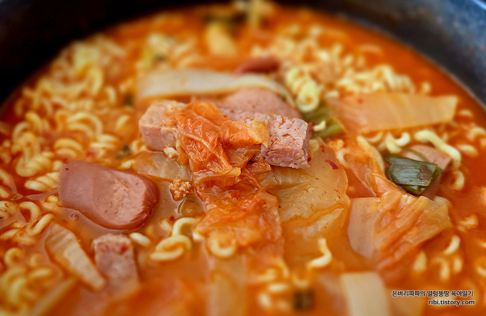 부대찌개를 먹다가 라면을 넣어 드실때 남은 육수를 활용하시면 됩니다.