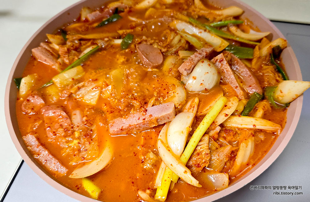 송탄 부대찌개의 명가, 어마어마하게 푸짐한 양과 진한 맛의 김네집 부대찌개 2인 포장 후기~!