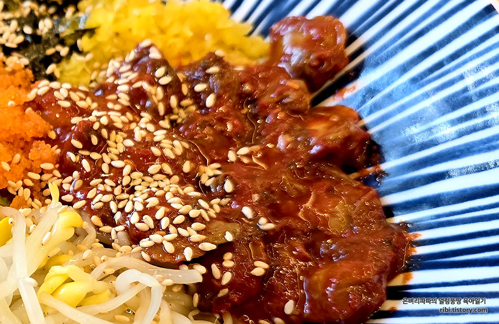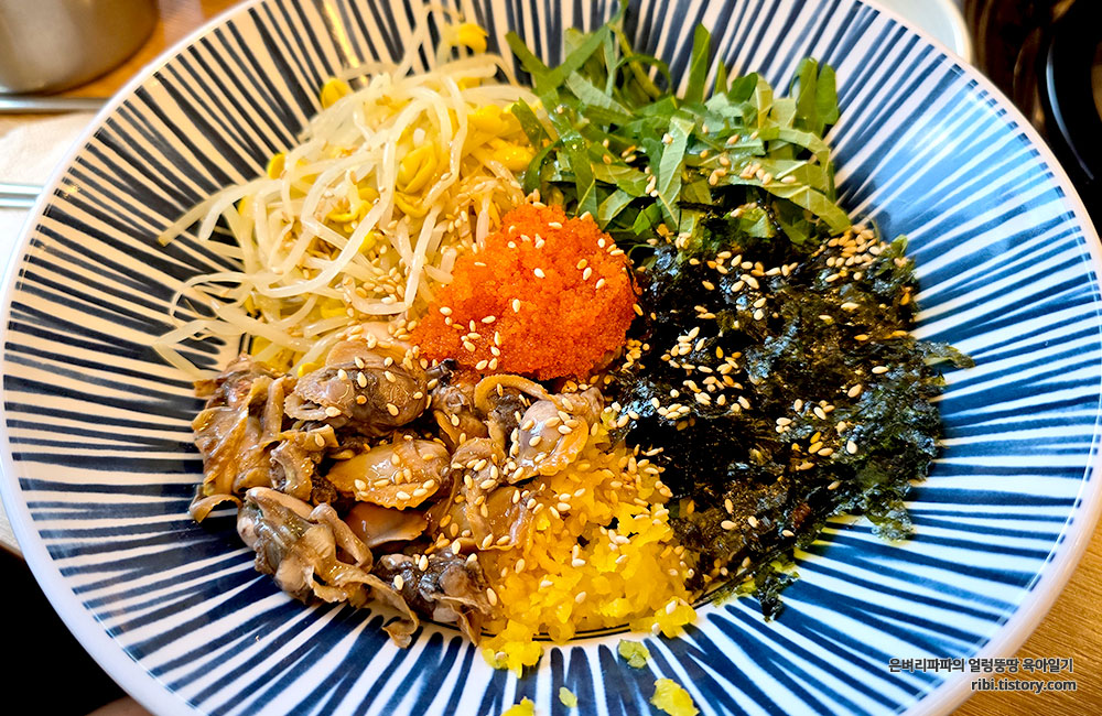 간장꼬막비빔밥은 맵지 않아 아이들도 잘 먹습니다.