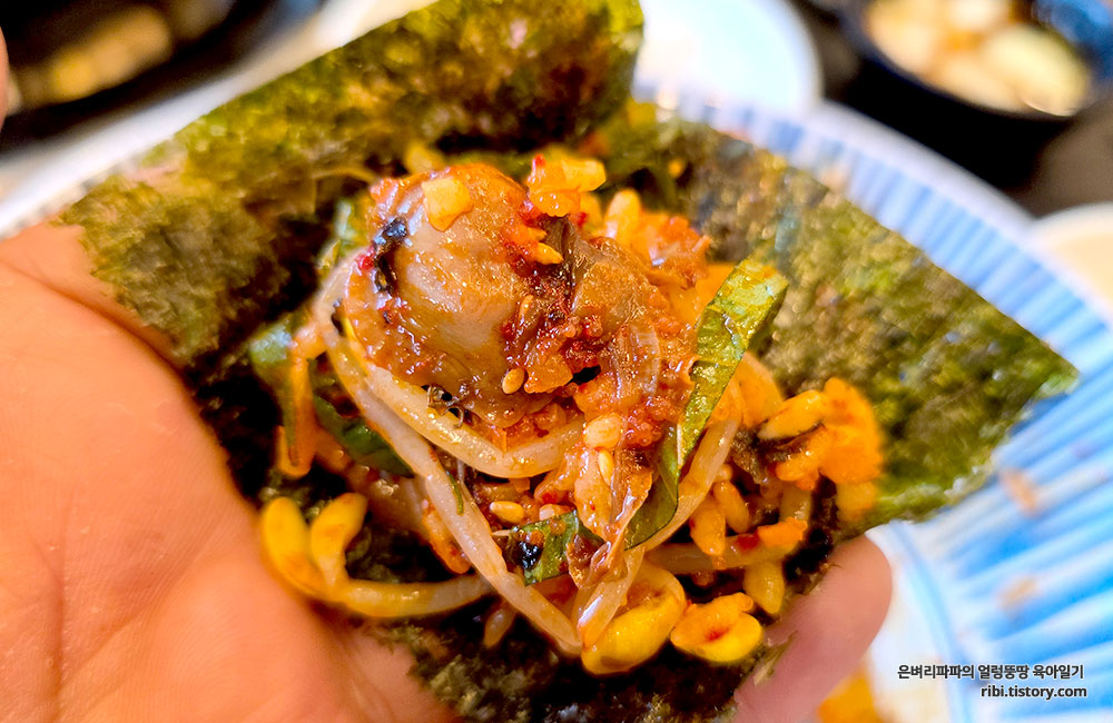 함께 나온 김에 싸서 먹으면 매운맛이 중화되어 더더욱 맛이 있습니다.