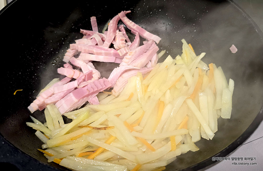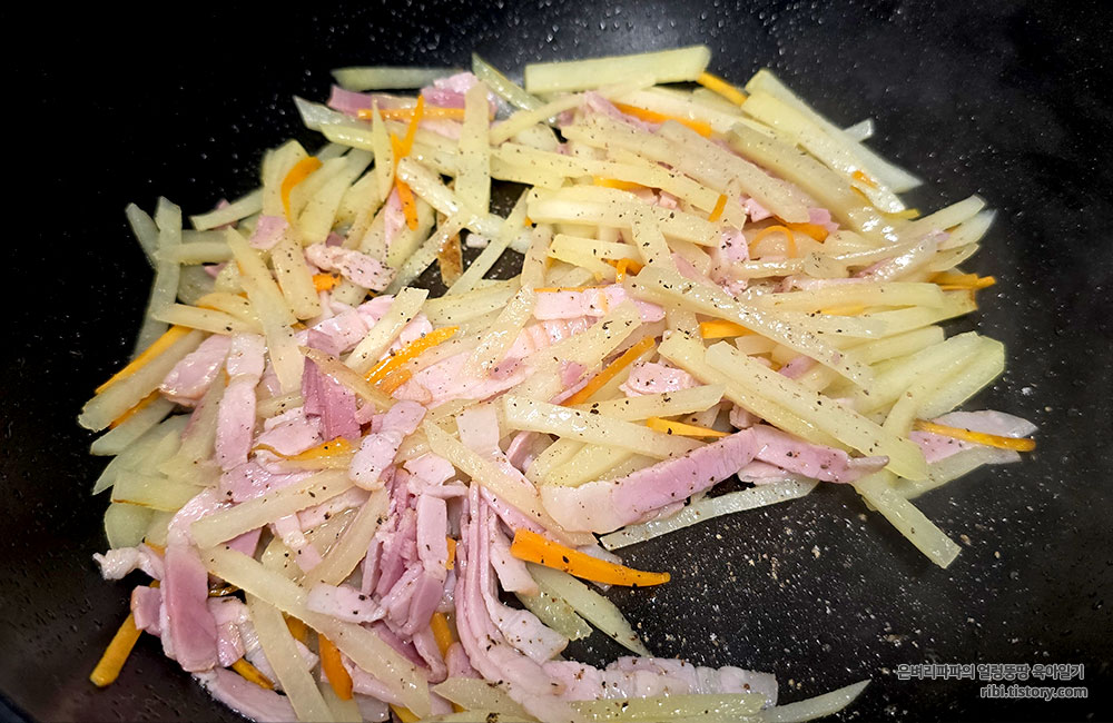 고3 수험생 딸의 요청으로 급하게 만든 베이컨감자채볶음입니다.