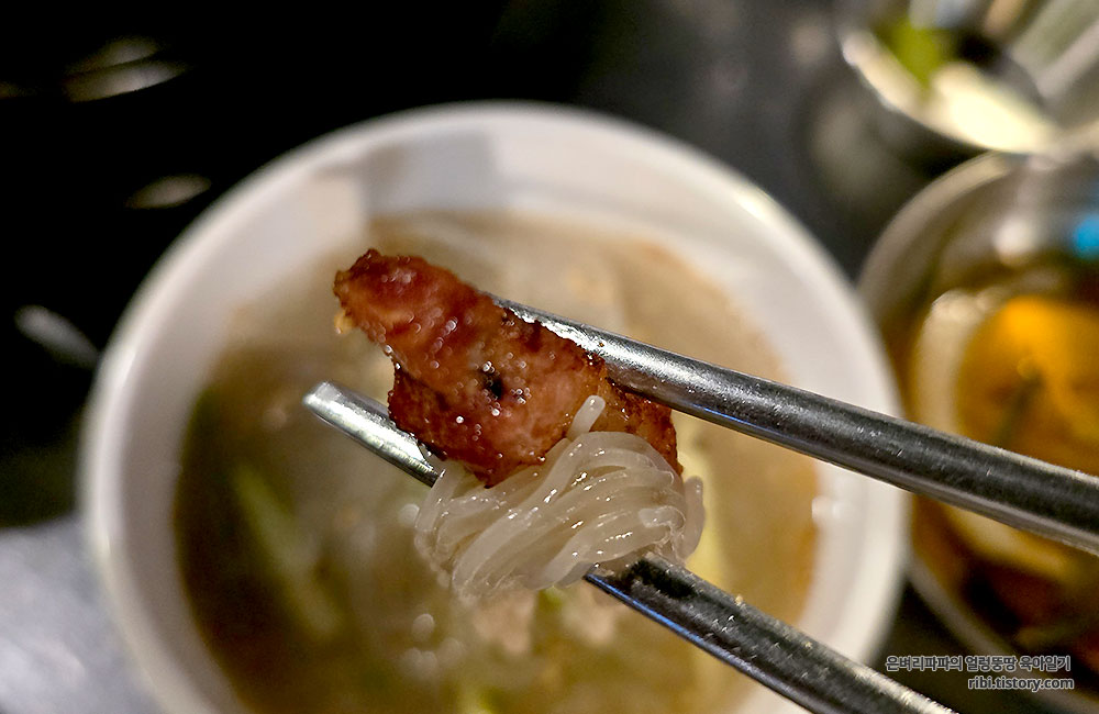 고기가 조금 남았을 때, 냉면을 주문하여 마무리했습니다.