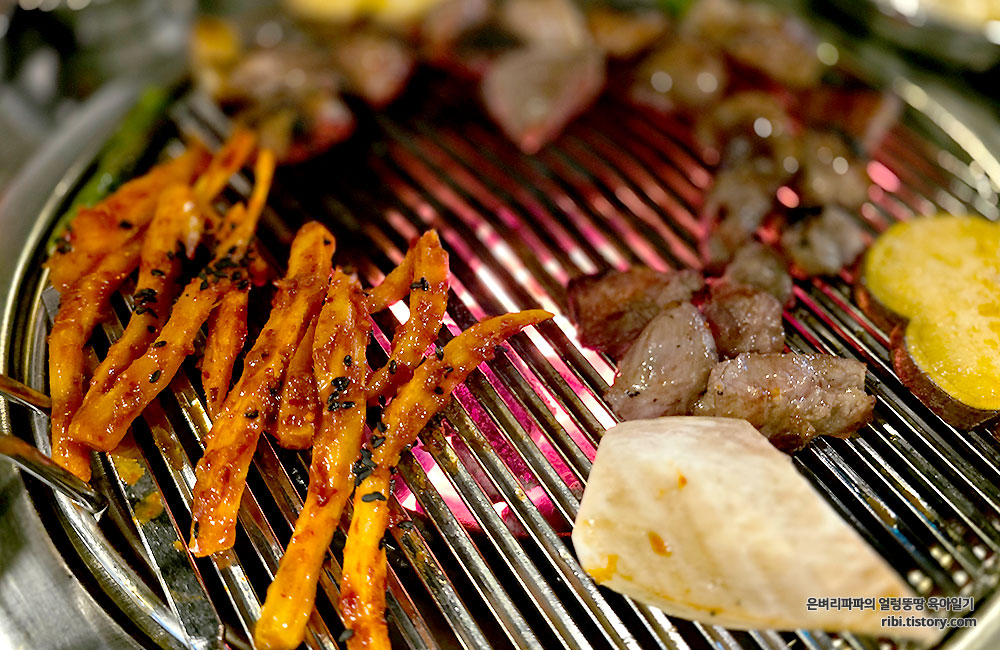 더덕무침은 그냥 먹어도 맛있지만, 고기와 함께 숯불에 구워 먹으면 더더욱 맛있어요.^^