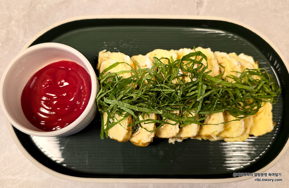 취향에 따라 케첩을 찍어 먹을 수 있게 케첩도 따로 담아내었습니다.