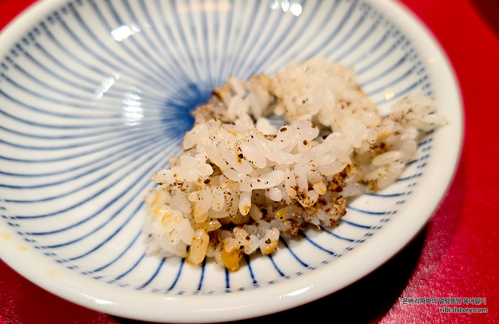 밥 위에 뿌려진 향신료가 음식 전체의 밸런스를 무러뜨리는 느낌이었어요.