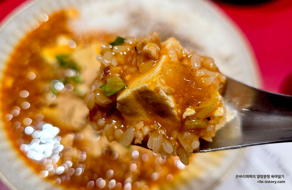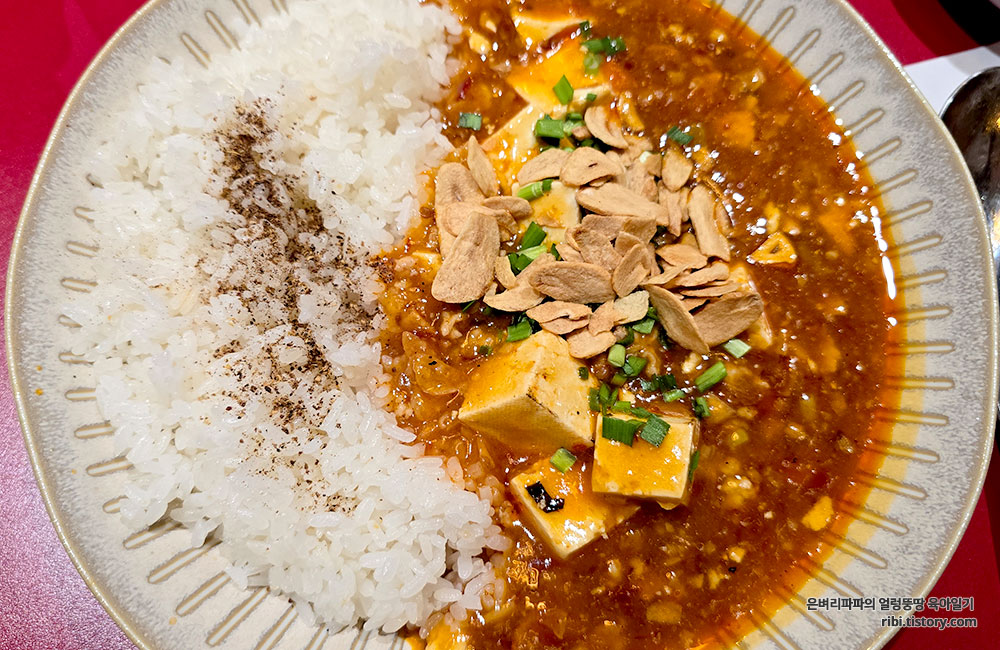 같은 마파덮밥을 주문한 아내는 향신료가 뿌려진 밥을 따로 덜어 내고서도 얼마 먹지 못했습니다.
