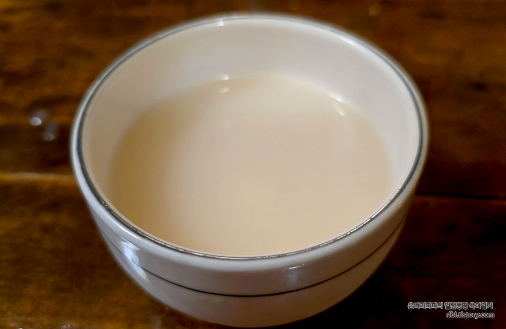 주문과 함께 가장 먼저 정다운 찌그러진 주전자에 담긴 수제 막걸리가 나왔습니다.