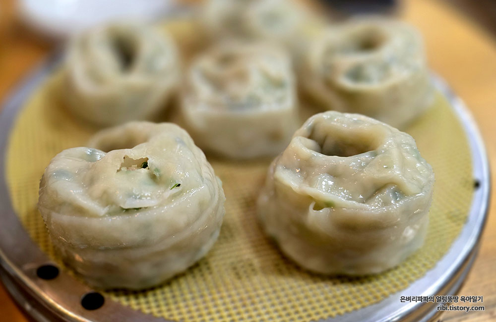 갓 쪄낸 왕만두는 한입에 먹기에는 무리입니다.