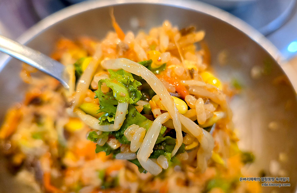처음에는 조금 삼삼하게 먹다가, 중간쯤에 비빔장을 추가로 넣어
