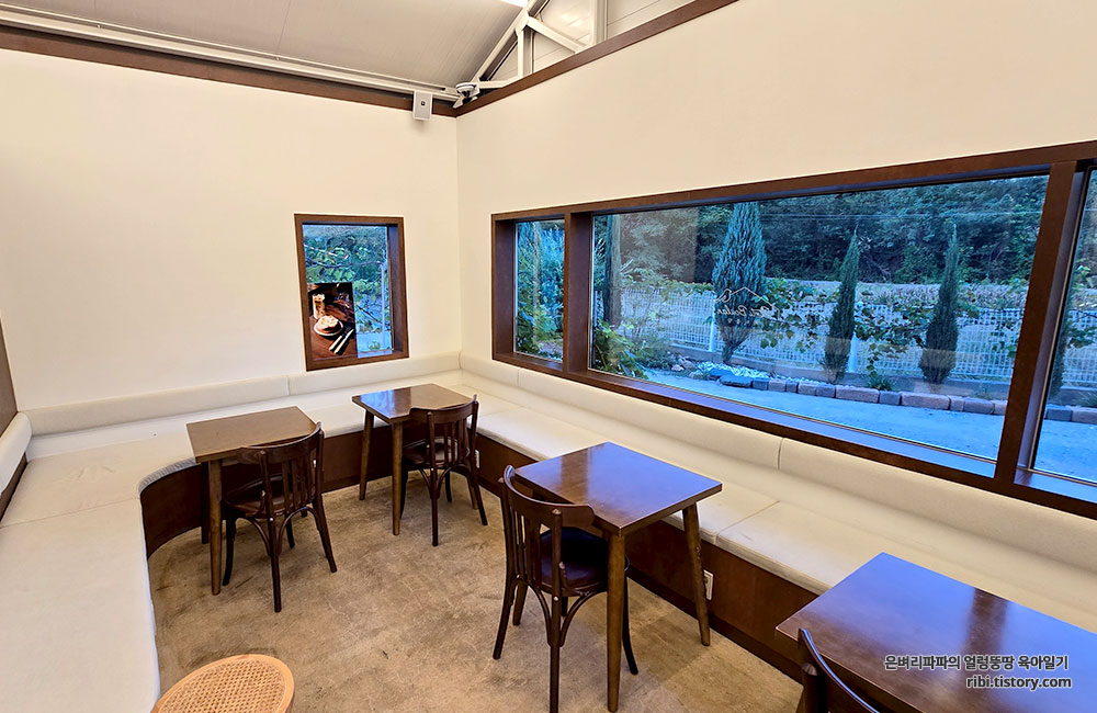 초록빛 시골풍경이 한눈에 담기는 여유가 느껴지는 그런 카페였어요.