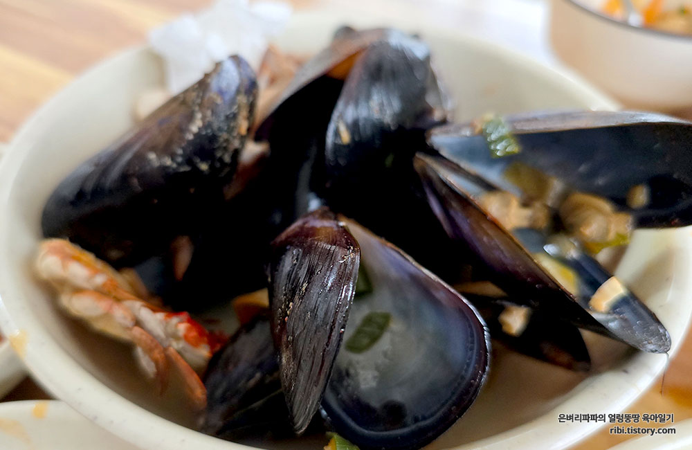 홍합의 양이 많습니다.