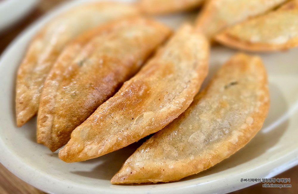바삭하게 튀겨진 군만두는 언제 먹어도 맛있습니다.