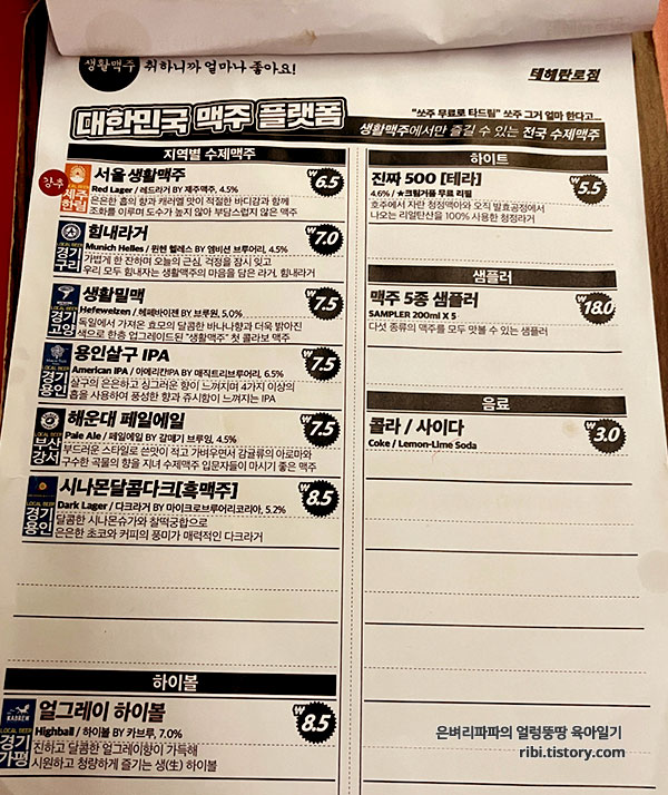몇 번 방문했었는데, 이번 방문에서야 정확한 이름을 알게 된 생맥주~ㅋ