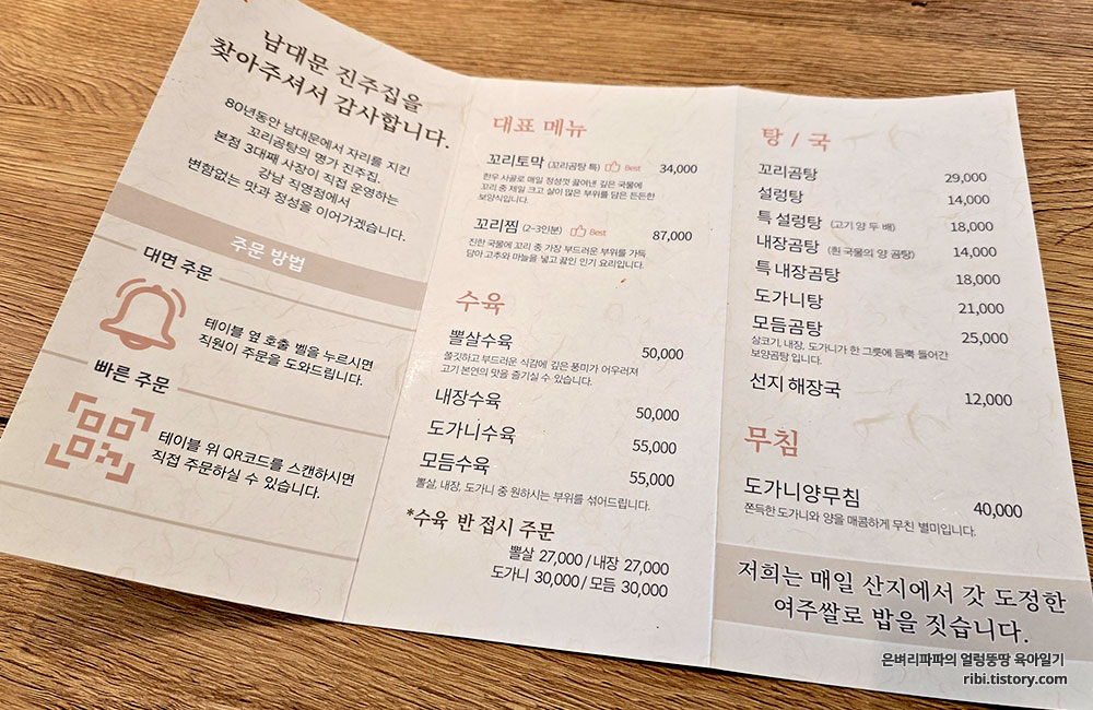 대표메뉴는 꼬리토박과 꼬리찜이네요.