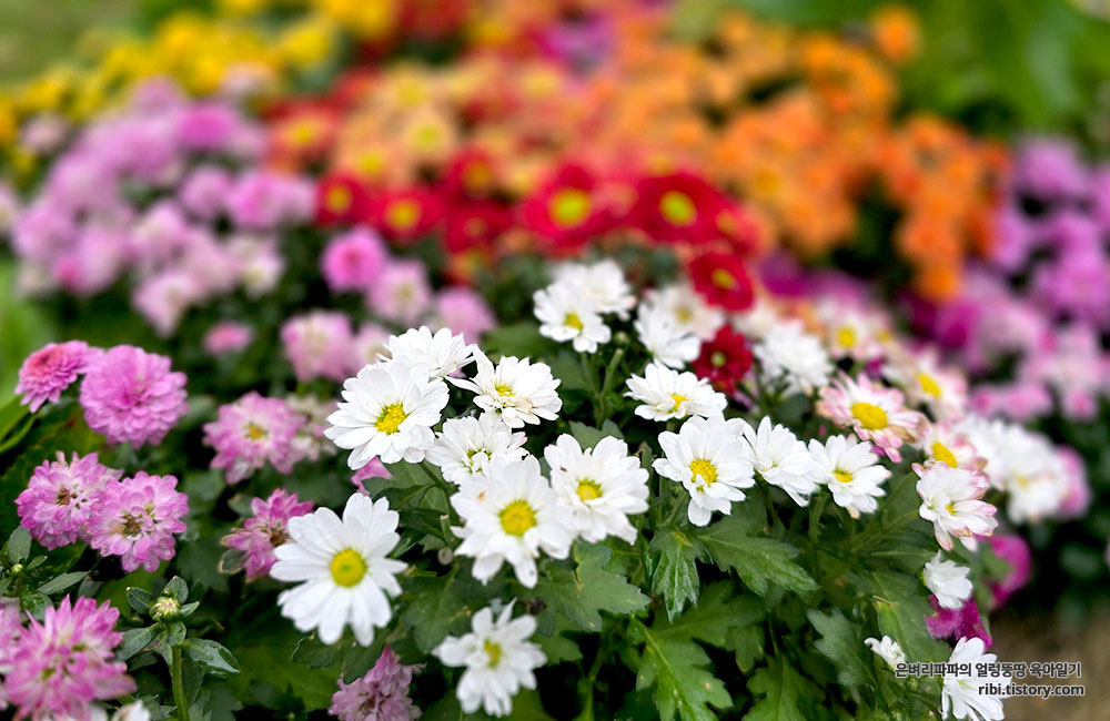 작은 화단에는 알록달록 가을 국화가 활짝 피었습니다.