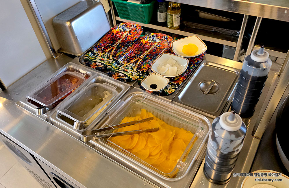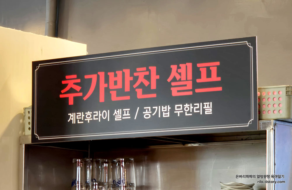 바로 공깃밥은 셀프 무한리필이 되고, 계란프라이를 셀프로 즐길 수 있다는 점이네요.
