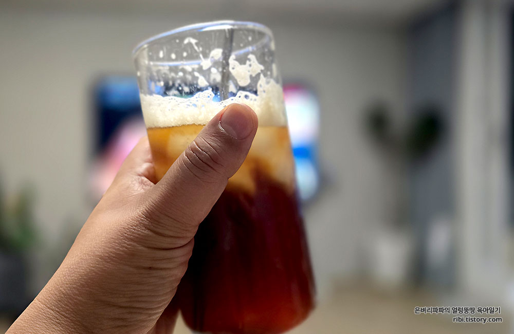 냉장고에 캔맥주를 꺼내려다가, 아들 녀석이 내민 아이스커피 한잔으로 대신했습니다.ㅋ