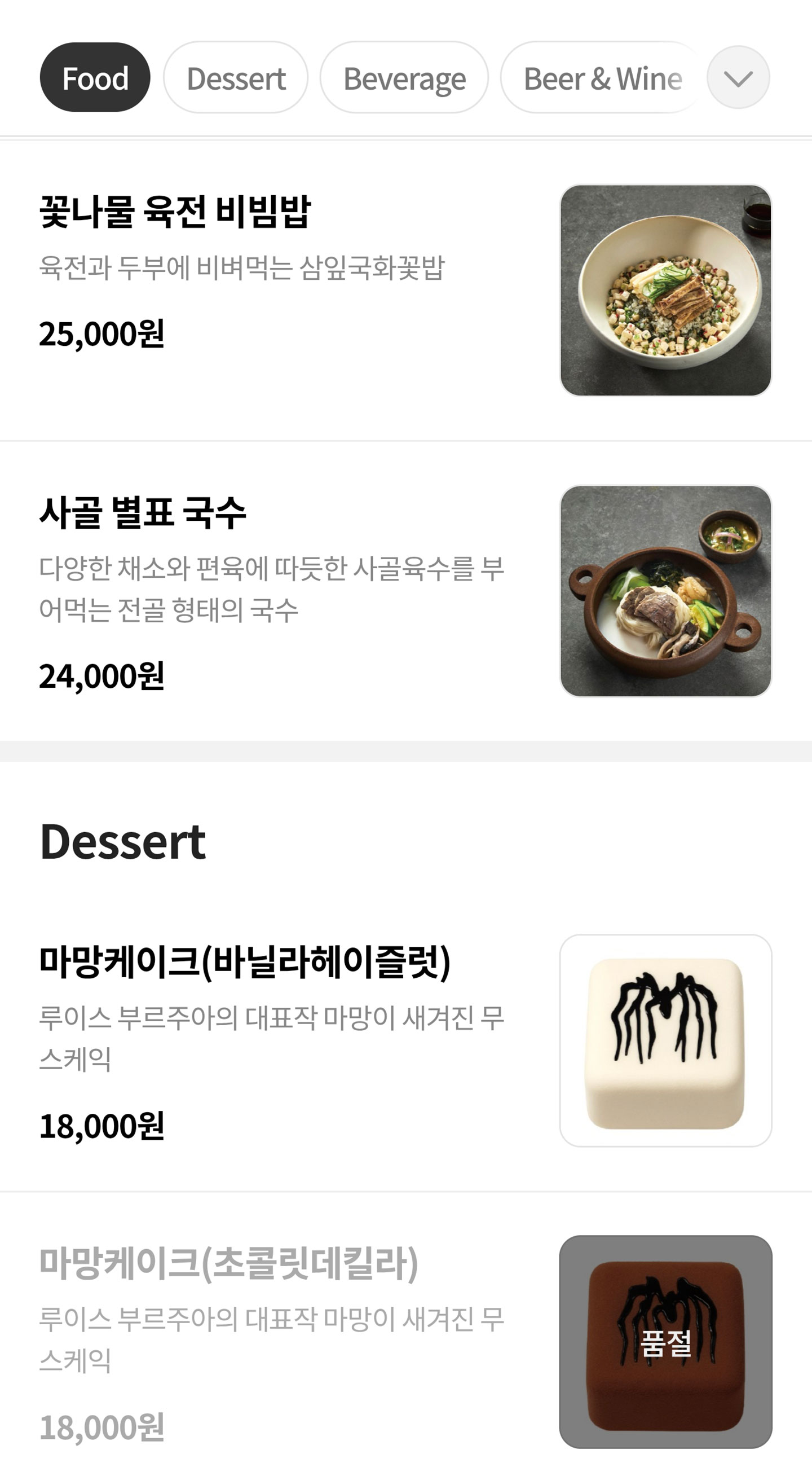 현재 진행 중인 루이즈 부르주아 전시와 연계된 특별한 디저트가 준비되어 있습니다.