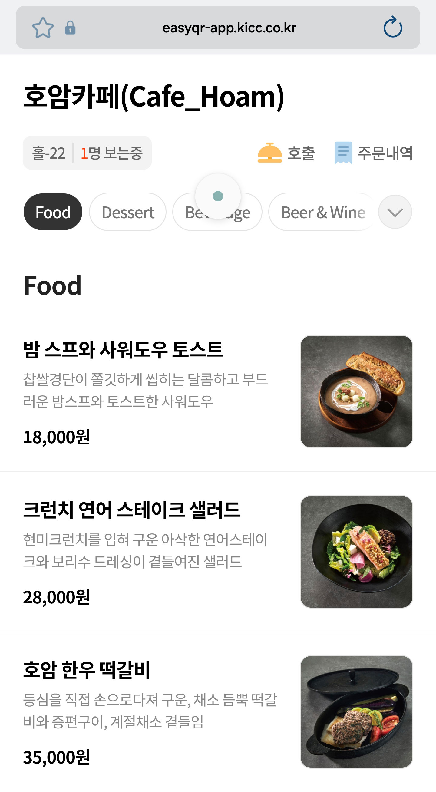 테이블에 놓여 있는 큐브모양의 QR을 스캔하여 주문이 가능합니다.