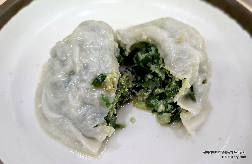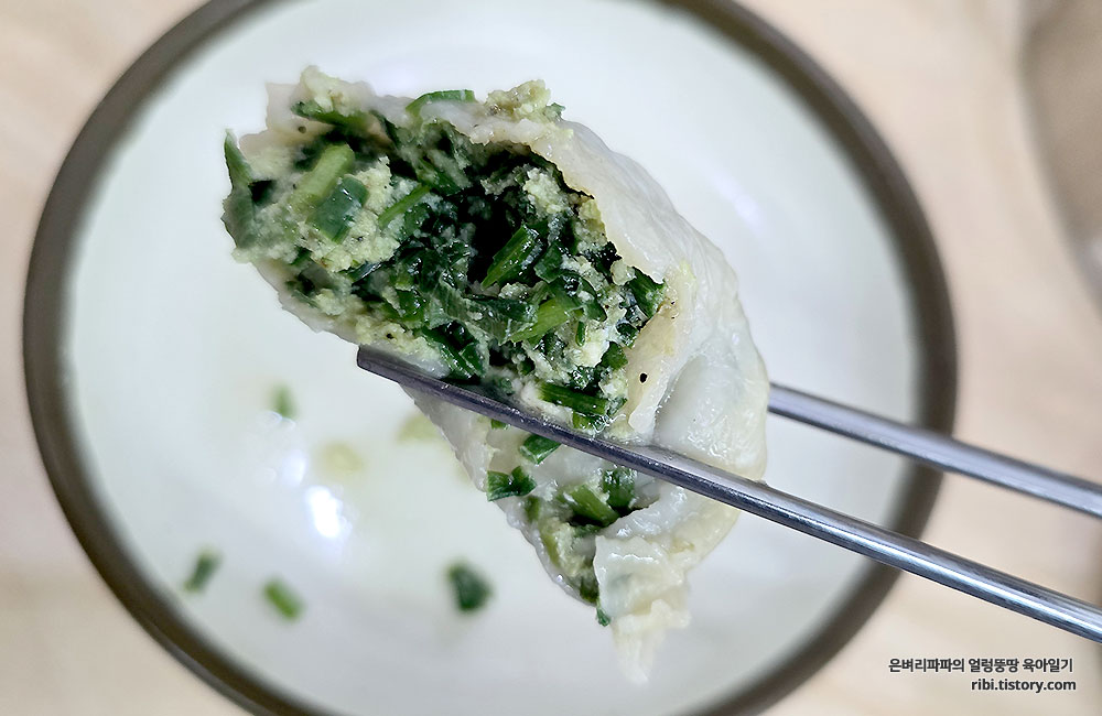 부추가 가득 들어간 만두소가 너무 매력적이네요.