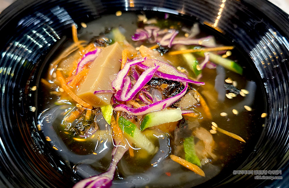 특히 함께 나온 시원한 묵사발을 한입 먹으면 매콤한 맛이 중화되어 계속 먹게 되는 것 같아요.