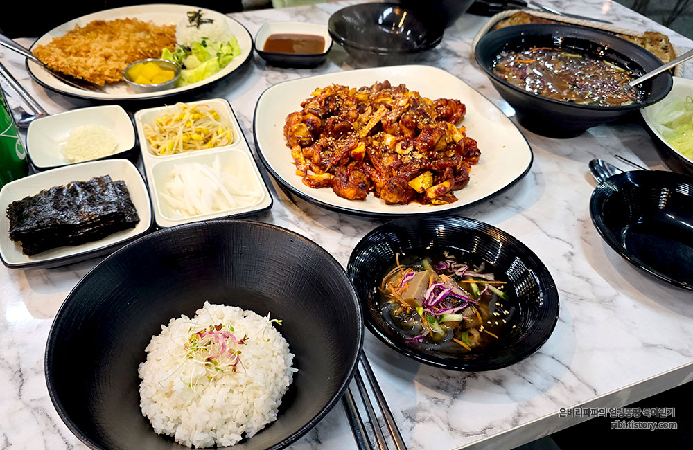 쭈꾸미 세트와 단품인 돈가스를 주문 헸습니다.